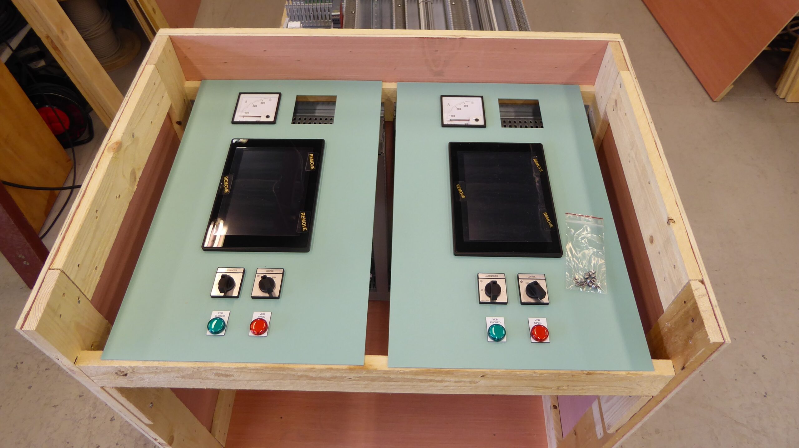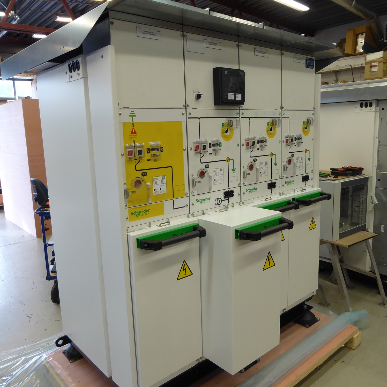 Delivery of equipment for upgrade/replacement of all low voltage sections in Main High Voltage Switchboard. New Mounting Plates and Doors for replacment onboard during short Yard stay