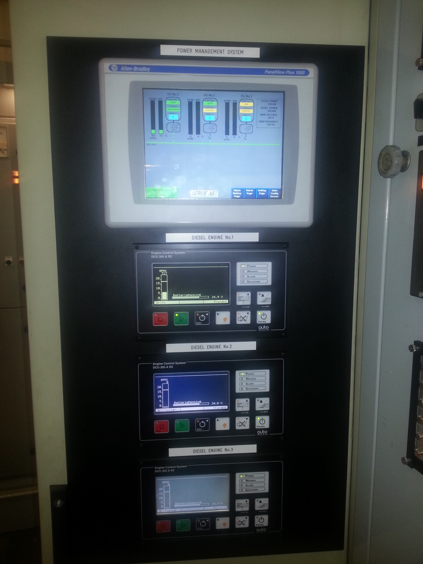 Delivery of new Low Voltage Switchboards and Upgrade of Existing Main Switchboards and Motor Control Centers. Delivery, Installation and Commissioning of new Diesel Engine Control and Safety System. (3 Gensets)